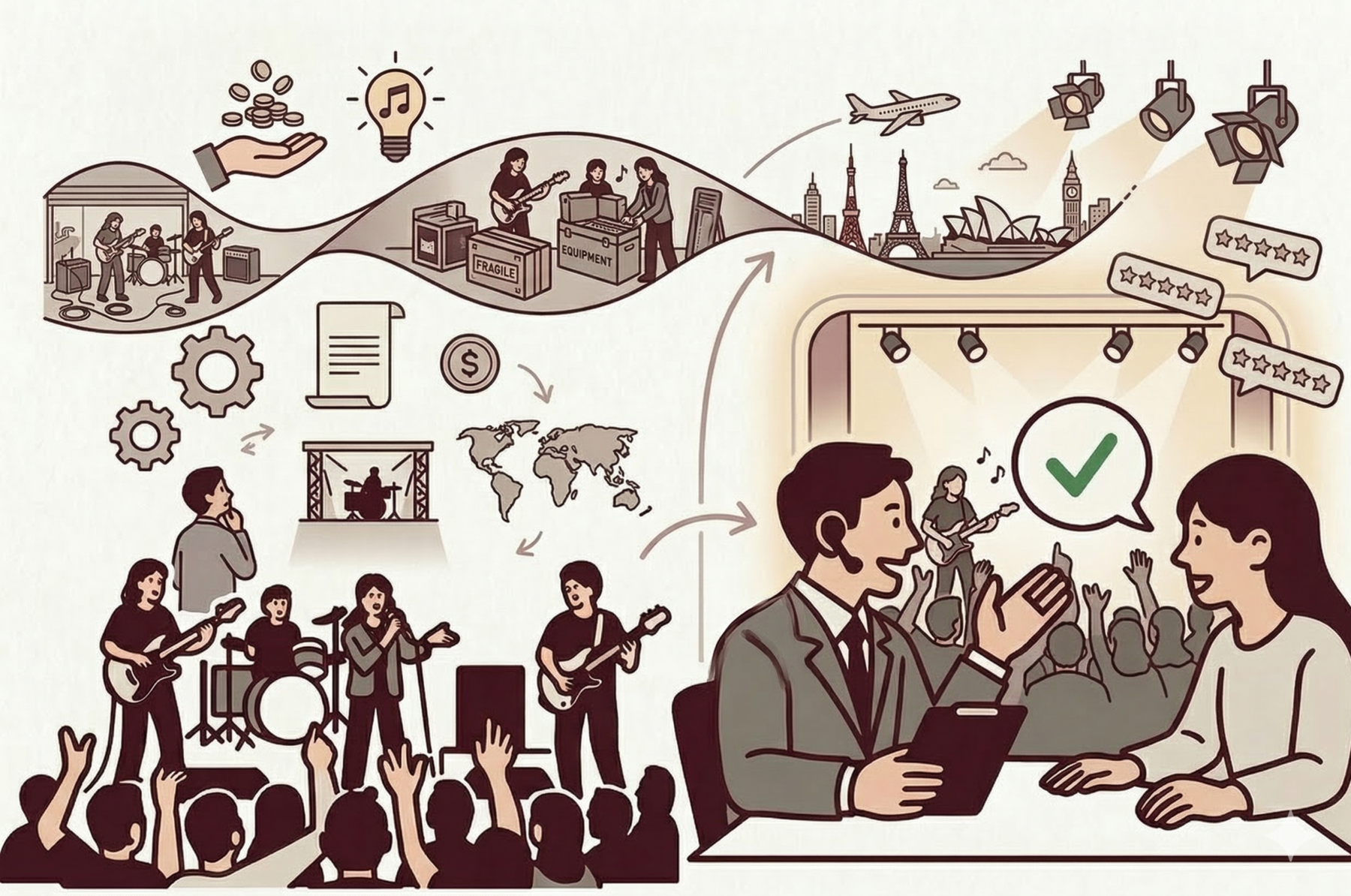 In recent years, we have successfully supported Japanese musicians in shows and tours in Asia, South America, and Europe. We have a particular passion for regions where Japanese music is still a growing market. We understand that every region has its own unique challenges, and we adapt our strategy to fit your specific needs.